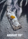 ABSOLUT 110?is a very unique ad: it features an egg, sunny-side up, on a very hot, gray surface. There's a yellow egg yolk surrounded by the egg whites and it's shaped like an Absolut bottle. This ad is a cross between Absolut Vodka 110 Proof and the old saying "It's so hot that it's 110?in the shade!". Printed up the left margin of this British ad it the typical Absolut info, including TBWA and ?996 . Printed under the logo is "INSIST ON ABSOLUT. THERE IS NO PURER VODKA. DO IT JUSTICE. DRINK IT AT 0蚓."