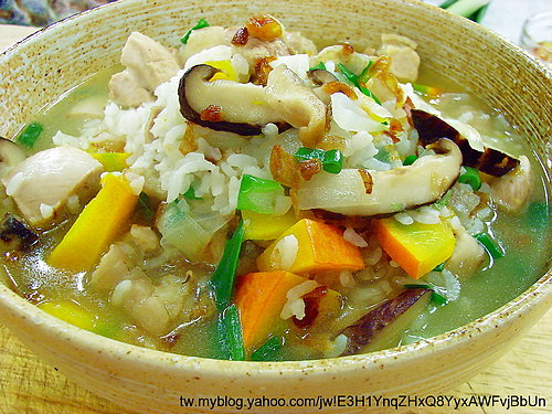 (一半水改成鮮奶就是西式粥品了關火的時候上面蓋兩片起士片)