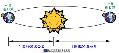 (地球以橢圓軌道繞日公轉)