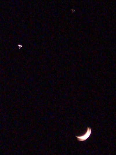 今天一出巷口就看到月亮與兩顆星星這樣排列著