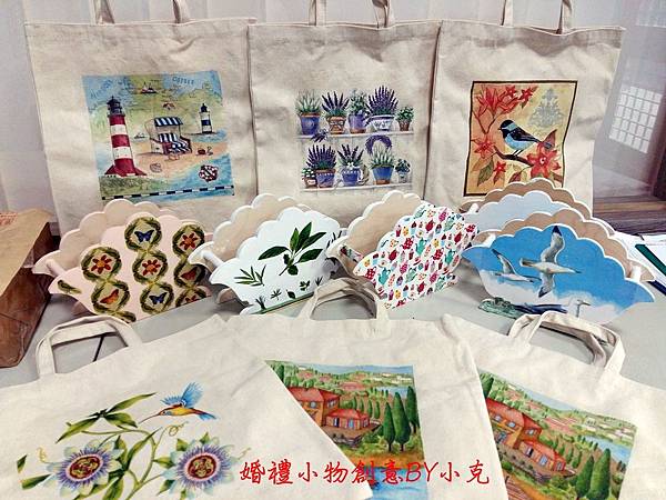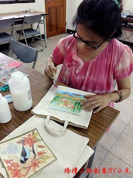 小克會建議由這三款入門~書籤杯墊環保袋,也是送者大方受者實惠的禮物.紙張圖案的花色目前已是多到讓人目不暇給,所以能做到不重複地的別具特色.書籤和環保袋採用素色帆布,簡單又原始的感覺,可以完全襯托出圖案的美麗.而杯墊除了可以放杯子之外,當成裝飾品也非常有味道.原則上只要選好圖樣,上黏膠並貼上圖案,最後再上一層保護膠,陰乾之後就完成了.新郎新娘可以一起製作,通過手作的過程,體會專注溝通和同心協力在未來婚姻路上的重要性。