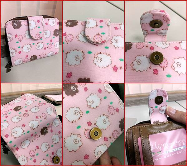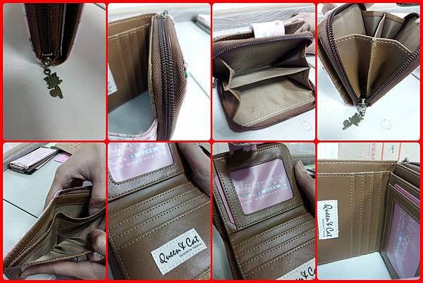 這個小羊短夾非常輕巧,長度就算塞在牛仔褲後口袋裡面也ok.短夾的設計算是五臟俱全,側邊是專放零錢有拉鍊設計的兩格,另外一邊的是夾扣設計,有放鈔票的兩格,四格橫式卡袋和一個直式卡袋還作了天窗設計,喜歡放照片的人一定很愛.