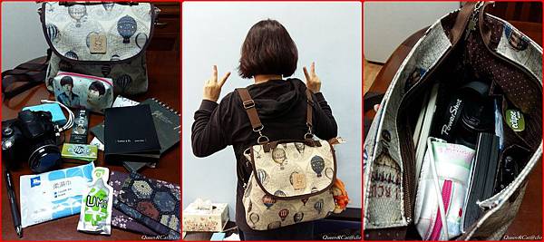 至於這個失心瘋拿到的三用後背包,小克的類單眼長鏡頭相機竟然可以放進去,這樣出門工作就不怕下雨淋濕包包,也讓相機池魚之殃了.看起來不大,能放的東西卻可以這麼多.小克於公於私都必須隨身攜帶相機和筆記本,這個三用後背包確實符合我的需求.工作的外出環境,不怕髒能耐磨可以防水加上內容量大,真是不二之選.當然還是有迷人的貓咪拉鍊頭,是皇后與貓防水包的特色之一.內部的車布或縫線,外部的扣環或布面設計,完全就是品質中的品質.真的說再多,都還不如你親自用用就知道了