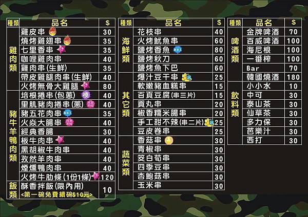 為了慶祝poekmon在台上市(哈哈劃錯重點),所以我們決定七夕情人節去夯肉部隊吃串燒;吃完以後剛好去中原大學團練(又是劃錯重點哈哈),可見位在中原夜市附近的夯肉部隊有多棒了!食材採用燒烤的料理方式,所以整間店是開放式空間,夏天來吃會覺得稍微熱了一點.