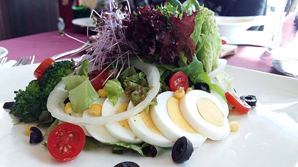 在挑高空間自然光十足的大廳裏面用餐,看得清清楚楚的佳餚,新鮮和迷人的色澤令人眼睛一亮.環顧四週的綠化植栽牆,整個用餐環境是宜人的自然界氣息,讓人心情大好.在這樣的空間用餐,食物的美味反而讓人可以更細緻的品味.而且這樣的環境拍起人像來,簡直媲美蘋果光啊!
