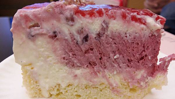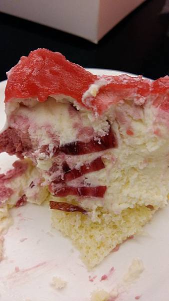 馬斯卡彭乳酪讓口感香醇,她的濃密細緻入口即化;朋友俏皮的解釋著"入口即化"的感覺就是這蛋糕一吃進口裡就能馬上說話了.