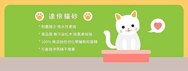 使用過達伶貓砂的心得就是除臭力強、吸尿力強、然後可以沖馬桶這麼方便.材料只有松木,沒有添加化學物質或膠水;松木是用進口的美國、加拿大、日本和蘇聯松木.可以提供生物鏈的一環,因為松木沖水之後到了河流,可以提供微生物或浮游生物營養,然後魚吃了它們.如果不沖馬桶,也可以直接當堆肥,對整個生態平衡和環境保護都是有好處.