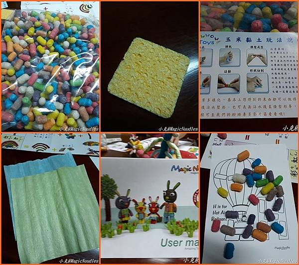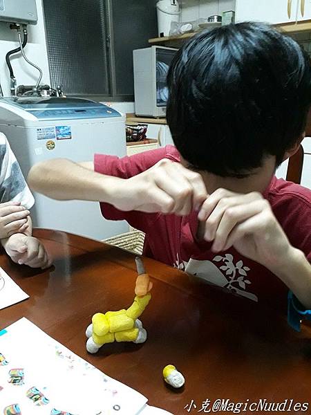 身為新手長輩當然要先說一下小克為什麼選這組玉米澱粉的MAGIC NUUDLES無毒積木黏土?這是要給小朋友玩的玩具,首先要安全無毒,你難保他們不會邊玩邊把手放進嘴裡,或是一不小心碎屑或粉末就吃進嘴裡.然後這組玉米黏土可以發揮小朋友的創意,直接用手沾點水然後拼接,不需要多餘或是危險的工具就能完成.而做主人的除了讓孩子盡興外,也不要讓自己太過忙碌於善後.家長們也是啊~如果是一般的黏土雖然重塑性高,但很容易就把周圍弄髒,濕濕黏黏的或是乾了又髒髒的痕跡很不好處理.