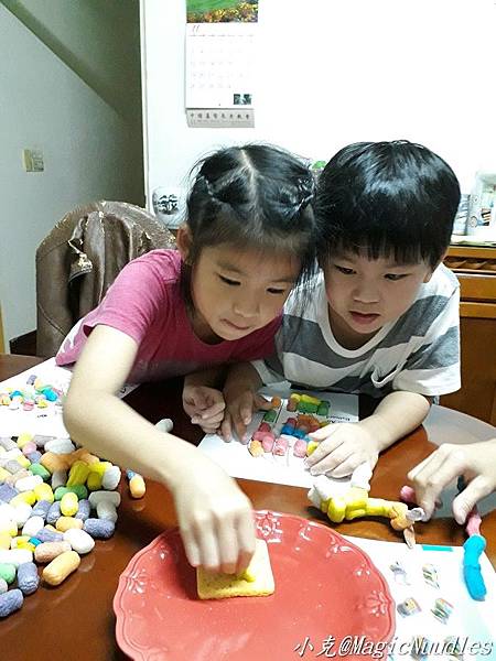 身為新手長輩的小克,年輕朋友小家庭帶他們小朋友一起來串門子,不僅要顧到年輕爸媽能放心交談,更要讓他們的小孩自己乖乖玩耍;小克這次準備了這組美國製用玉米澱粉為原料的MAGIC NUUDLES無毒積木黏土,希望能用創意簡單製作又好玩的遊戲來買通小孩們的心.哈哈~
