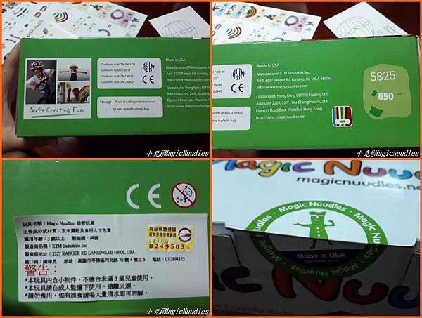 所以,安全無毒,簡單發揮創意,善後好處理;就這三個理由讓我選擇了MAGIC NUUDLES無毒積木黏土 650PCS 這組美國原裝進口的玉米澱粉無毒積木黏土.同時通過美國【ASTM D4236】(入口安全性、皮膚刺激性、眼睛刺激性),美國【ASTM F963】(意外傷害性),歐盟【EN71】(玩具完全標準),而且這些積木黏土放在土壤裡數週就能完全分解不汙染環境,我們擁有一個快樂有創意的童年卻不會增加地球的負擔,多好呢!