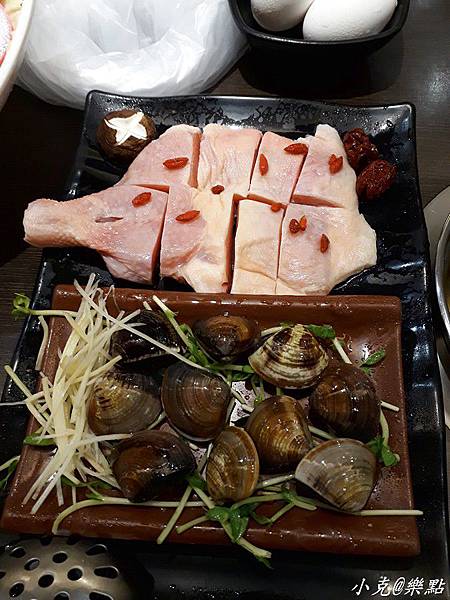 大隻的土雞腿去骨,土雞的肉質是吃得出來的,尤其下鍋以後的口感,去了骨頭吃起來更方便.蛤蜊也是大型的,煮出來的湯底並沒有遇見莎莉表示吐沙完全,每顆都有打開表示新鮮,每一粒都是飽滿的肉質表示認真的挑選過,食材的品質看得見,火鍋店一定要能這樣才行.