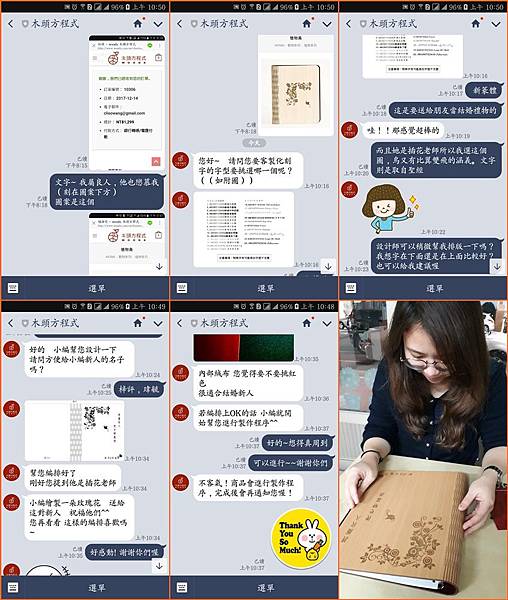 從下單到連絡製作到確立需求都是在手機上面完成,在LINE上面的討論和建議,都在在顯示了木頭方程式客服的專業與幫客戶多想一點的心意.又是一件完美的禮物,朋友收到以後滿心歡喜,不得不說是送者大方受者實惠,我相信更是美好的回憶!希望我的新娘子可以好好的書寫這本木雕筆記本,有一天跟我們分享他的心情故事囉!
