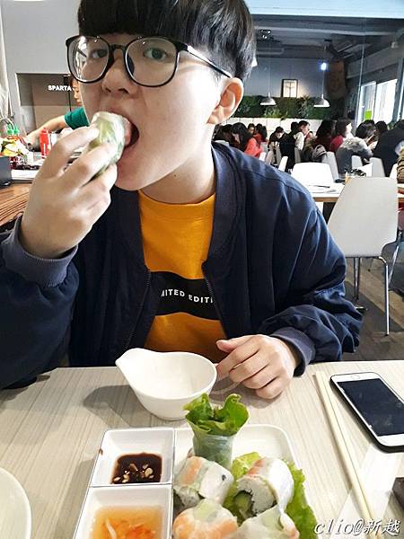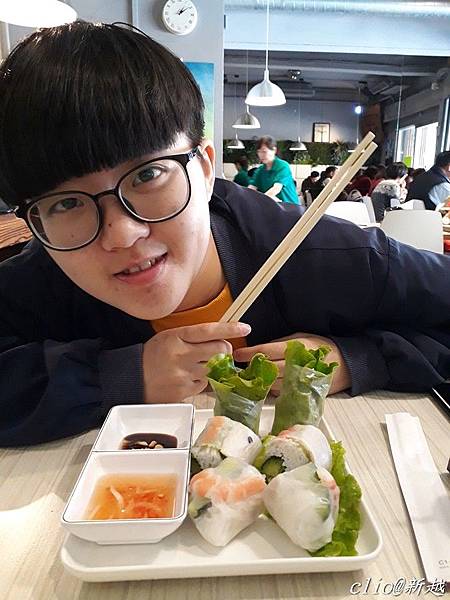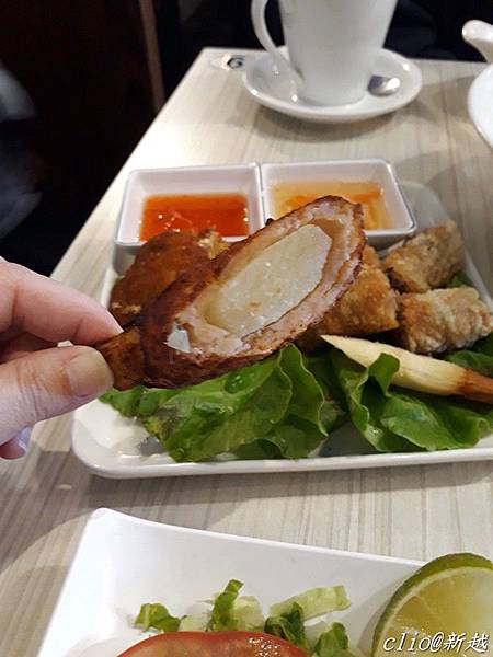 我們點了兩份主食兩份小菜和一份甜點一份飲料,老實說兩份主食的份量都還蠻多的,我和正太都不是小鳥胃的女生,加上越式料理清爽又特殊的香料,讓我們全都吃光光囉!火車頭特別牛肉河粉+特製烤香茅雞腿飯+越式生春捲+蝦味拼盤(金錢蝦餅 甘蔗蝦 炸春捲 三合一),加上熱的經典越式咖啡,還有少不了的甜點~芋頭西米露.其實當天小克有點感冒,但是味蕾真的需要新刺激,每道料理蘊含著清爽的酸味,優雅的甜味,默默的辣味,不僅開胃更是對味;新越越南麵食館真的讓我胃口大開食慾大增.