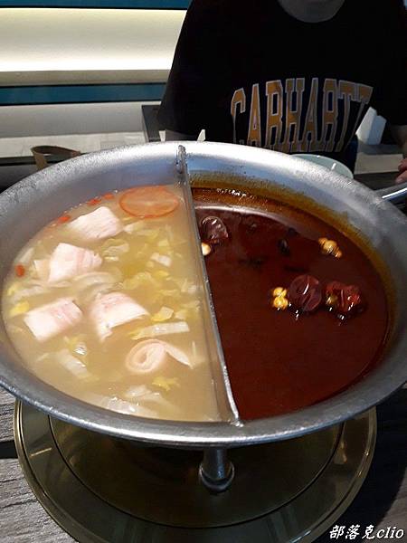 我們是鴛鴦鍋,麻辣湯和酸白菜湯兩種湯底都有!麻辣湯~是可以喝的麻辣湯喔!二十多種純正辛香料淬煉出的紅油,加上自己搗碎的頂級重慶江津區保鮮九葉青花椒,有著獨特清新果香味,跟其他的麻辣湯頭截然不同.酸白菜湯~這是小克最愛囉!清爽乾淨的酸甜滋味,用乳酸菌和酵母菌長時間發酵大白菜,加上高湯熬煮.白肉是豬腹脇部五花,瘦肥比例恰好。通常我是不喝湯,但這鍋酸白菜湯真的讓我味蕾全開,從口腔蔓延到喉嚨食道,蔓延到胃都舒暢起來了。