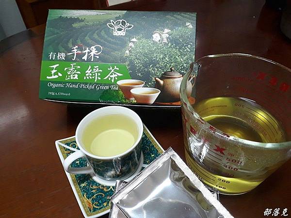 我回答~這是我剛到手的玉露茶園手採有機綠茶,雖然是茶包但跟茶葉一樣出色.冷泡茶沒有經過熱水的催逼香氣,還能讓人喝起來香氣四溢,真是不簡單.可以仔細看看這泡出來的茶湯,倒進玻璃杯裏面,非常的清澈透明;甚至可以看透過去盒子上面的圖片,很輕盈的香氣還有清爽的口感,絕對是玉露綠茶的等級啊!