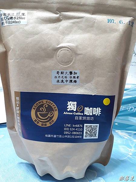 <獨咖啡>很細心把咖啡豆的資料很詳細的列明在紙袋上,包括產地豆種烘焙方式和效期,如何喝出豆子的精隨也提供了<獨咖啡>的看法.當然我們有自己的想法和做法,會更符合我們的喜好和習慣囉!所以你可以在紙袋上看到~哥斯大黎加水洗中深焙征服者,107.6.12烘焙養豆完成,手沖88度水溫15.5公克豆子給水250cc,提供給愛好者基本的品嘗資訊.我們也照本宣科如此這般的來手沖和使用賽風壺來試試.賽風壺則是豆18克水240cc,磨豆刻度是小飛馬3(手沖用3.5).