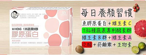 讓你的照片就是你吧!不是用了過多app的照騙.<MIHONG136蔬果B群膠原蛋白>,每天只要兩顆讓你可以美肌的就像天生麗質.珍貴無腥味的魚膠原蛋白加上豐富的維生素C,包含超過百大蔬果酵素的小分子精華.光陰也拿你沒辦法,因為由內而外的健康才是真實自然的美.