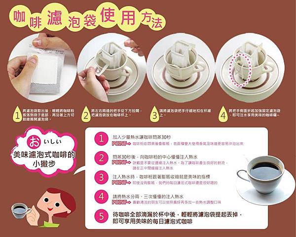 小克的咖啡師朋友pinco再喝過這款日本原裝DripBag之後,覺得新手入門或是不想喝即溶咖啡,這個原裝進口網路銷售第一名的濾掛式咖啡,是真的還不錯喔!至少大家的共同選擇也幫你做了最好的推薦,香氣足又不苦澀,第一次喝咖啡的人也能滿意地接受.
