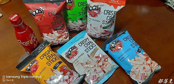 讓你停不了手,也住不了口的【泰國 KOOSA】蟹肉餅乾,有6種口味滿足不同的嘴和不同的喜好.他可是泰國國民小吃排行榜第一名喔!由100%蟹肉棒製成,聞得到蟹肉的香氣,ˊ吃得出蟹肉的滋味.含有豐富的蛋白質外,他也低脂肪、無味精、無防腐劑,並且通過國際食品認證.只要動動手指頭就可以宅配到家盡情享用囉!