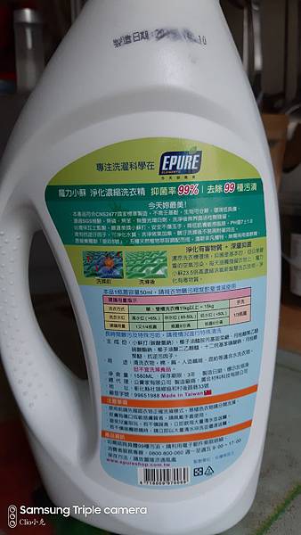 小克身為媽媽,洗衣服就像是日常瑣事,但也是一家人的健康大事.除了把衣服洗乾淨之外,更要能乾淨的穿在身上;不傷衣料也不傷皮膚.像是小克的兒子有異位性皮膚炎,除了要求衣服的材質之外,洗衣精的選用也很重要.這次入手的EPURE恩普樂魔力小蘇淨化濃縮洗衣精通過SGS檢驗,無磷、無苯、無壬基苯酚,而且是99%生物可分解。連小寶寶的衣物都可以用它來洗,當然也就放心洗兒子的衣服囉!