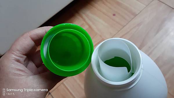 先講一下魔力小蘇的貼心小設計~手把的地方有顆粒,在握取的時候比較不容易打滑,可以穩穩地握好.瓶蓋和瓶口的設計有巧思,當瓶蓋蓋回去的時候,如果還有洗衣精在瓶蓋裡,可以順勢流回瓶子裡面,而不會沾到瓶子外面或是手上都是.