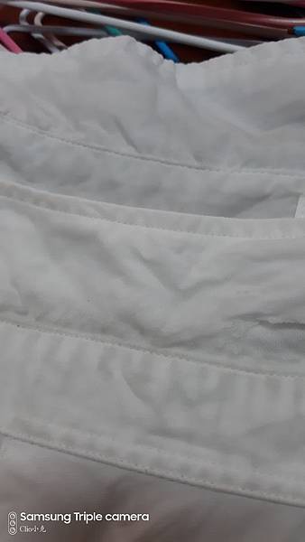 跟小克所用的其他品牌來比較的話,去汙效果真的有比較不一樣喔!正太上班規定穿白襯衫,使用魔力小蘇(上)其他品牌(下)用領子貼在後頸的部分做比較,相同水量和洗衣精劑量,洗滌方式也相同之下,上面那件白閃閃,下面那件可以看出還有一道道的灰色痕跡.