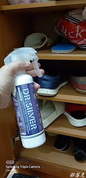 客人離開之後可以噴灑他們穿過的拖鞋,家人穿回來的鞋子放在開放式的鞋架上,可以噴鞋底和裡面,尤其噴裡面可以減輕異味,也能保養鞋子不受汗水和雨水的侵蝕.至於鞋櫃裡面的鞋子,不常穿又悶在裡面,更要適度的定期噴灑DR.SILVER銀博士剋菌大使.
