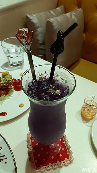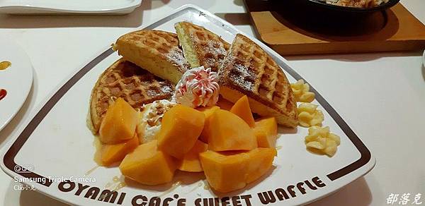 最後的甜點是當季的芒果鬆餅,比較特別的飲料是我的紫羅蘭水果茶,還會變色喔!鬆餅的鬆軟但保有口感,芒果給得很大器,一口鬆餅一口芒果相得益彰.飲料也都各有巧妙不同,不論點甚麼都讓人口氣芳香心情愉快.