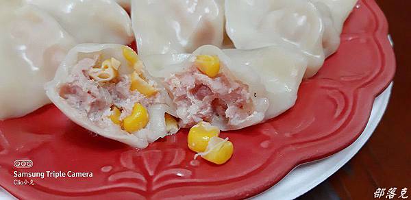 小克宅配的山林水草RivaGreen的朝貢豬肉水餃有朝貢豬高麗菜水餃、朝貢豬韭菜水餃、朝貢豬玉米水餃,三種口味當然每一種都要有才行.一拿到馬上就要煮個水餃來吃,水餃拿在手上的感覺是大小均一,水餃皮上的麵粉適量,每一顆的接縫都很緊密;朝貢豬餃子們都有很好的外表,賣相好看了就舒服.
