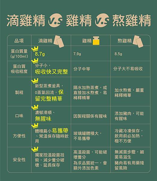 利得牛樟芝滴雞精的雙成加倍,有牛樟芝的珍貴三帖類+一隻雞僅能滴取2包滴雞精=優質小分子蛋白質高濃縮萃取0稀釋,完整補充一家大小日常所需.藥補不如食補,食補選擇牛樟芝滴雞精,非常適合用來送禮孝敬長輩(歡迎大家送給小克囉!)、高壓忙碌上班族體力補給、及病後補養。