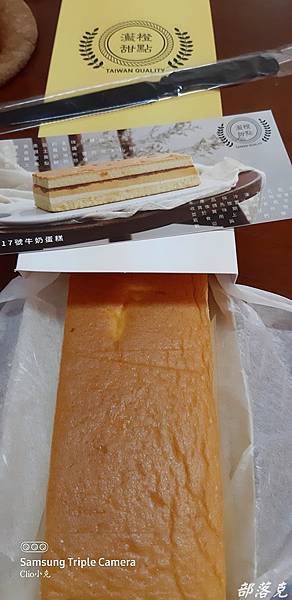 金凰17號牛奶蛋糕~有著黃金比例讓這三者巧妙搭配而成的牛奶蛋糕,AOP金牌發酵奶油+金沙鹹蛋黃布蕾餡+手工熬煮金鑽鳳梨醬.蛋糕是清新的牛奶口味,一口咬下先是綿密的軟實力,接下來是夾層的硬裡子,微酸的鳳梨配上稍鹹的鹹蛋黃,很跳的滋味在嘴中爆發.小克很喜歡金沙鹹蛋黃,這一條不ˊ之不絕就嗑了大半.口感層層疊疊的,酸鹹甜真的讓人想一口接一口找到答案.