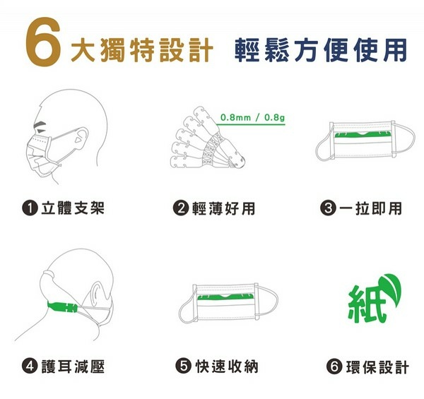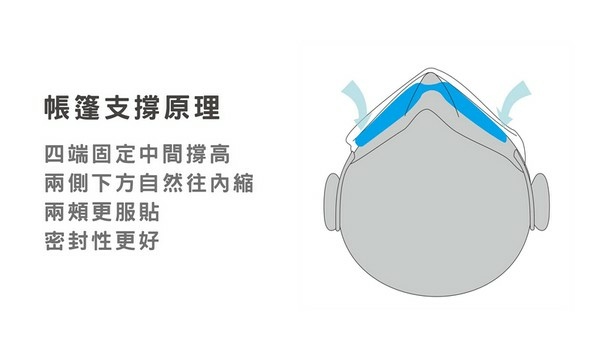 我們所使用的平面式口罩,很容易因為展開不完全而碰觸到皮膚,戴久了所產生的熱氣會造成口罩塌陷.悶熱呼吸不順,容易掉妝外,也容易造成皮膚過敏或起紅疹等皮膚狀況。口罩的耳掛繫帶也會有勒耳或摩擦,都讓耳朵後背不舒適。