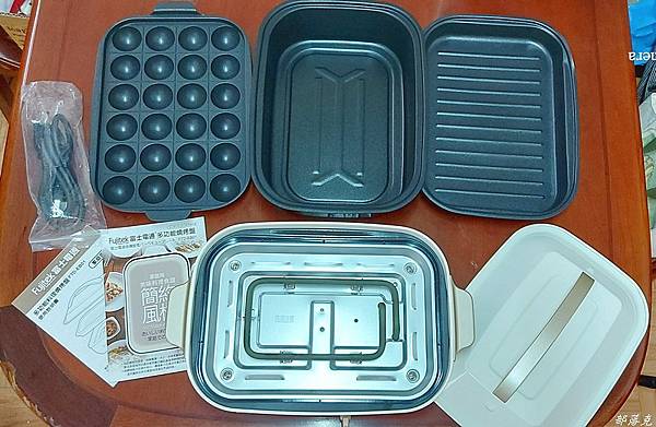 【Fujitek富士電通】多功能燒烤盤FTD-EB01,外型非常漂亮.使用過後,不慎沾上油汙,稍加擦拭就煥然一新了.附帶三種烤盤煎煮燉炸蒸,煎烤盤+深鍋炒鍋+章魚烤盤一機就能搞定.烤盤層疊好收納不占位置,分離式電源拆裝容易,也好收拾.而且有台灣BSMI安全認證,讓我使用更安心囉!