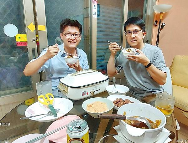 深鍋用來煮火鍋,食材都放好再加入自來高湯,就可以開電來加熱煮火鍋.這個水量的最高點是可以放滿10人電鍋的水量,容量大可以滿足很多人共餐,就算飢腸轆轆也不怕.