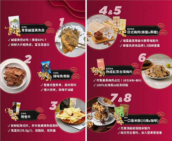 放下一切,拿起Umade咔咔吃- 虎哩快樂年節零食組,跟我們一起吃吧!飯後點心、聊天聚會、追劇玩手遊,任何時候都可以打開你的零食組,吃點心就能開心點!一組有8樣,風味不同口感不同,絕對可以找到你的愛不釋手.還有一個超炫提袋,讓你送禮大方又體面.