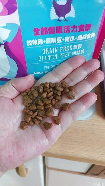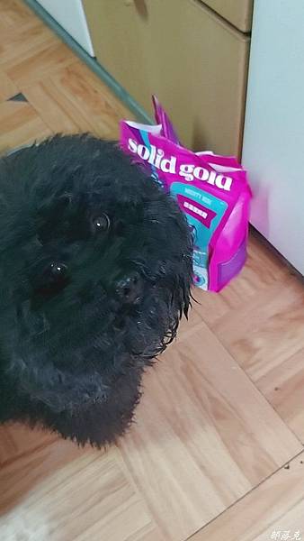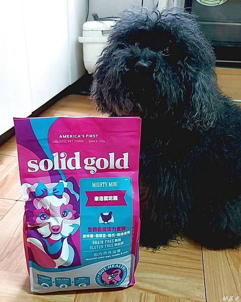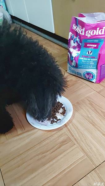 心型的狗糧,主人看了就心情好,哈哈~才打開包裝,咕少就擠過來想吃了.先放在手上,讓牠吃看看沒想到秒殺.盤子裡單純的只放Solid Gold素力高~樂活就吃雞全齡活力天然糧,再看看牠的接受度如何?牠吃東西會看心情,會看內容,有時候聞一聞搖搖頭就走開了.沒想到以秋風掃落葉之姿,把盤子裡的天然糧全吃光了.完全不讓我擔心接受度,或是還在擔心怎麼銜接.