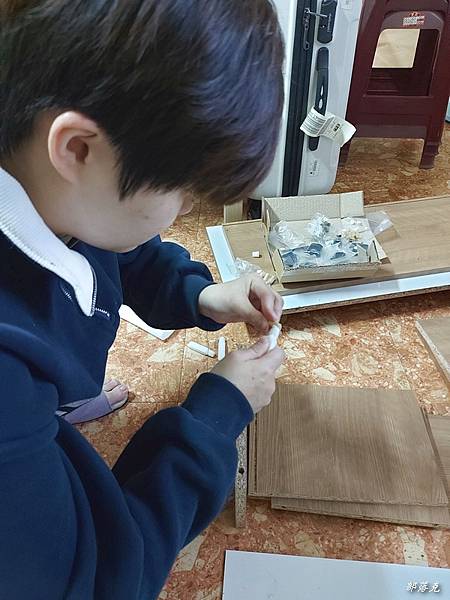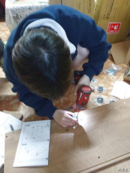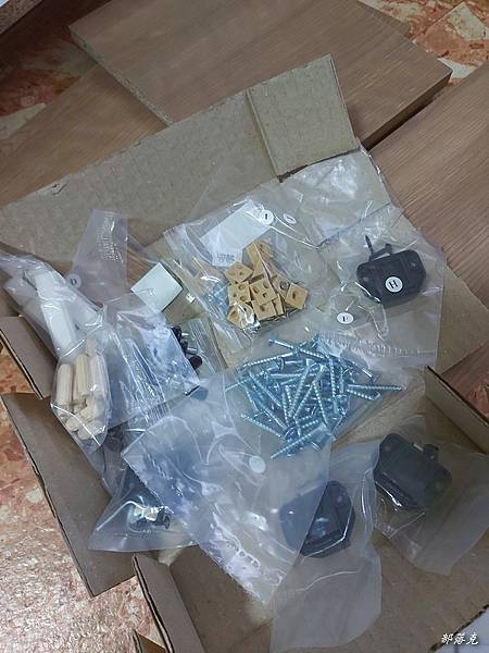 喜歡自己組裝的人,可以大顯身手囉!到貨時有兩箱,箱邊有註明1/2,按箱取出所有材料.有說明書和零件袋,說明書有編號頁次,先確定是否已經照順序排好,最好拿一個盒子把所有零件都放在裡面,免得組裝一時找不到或是比較小的容易滾到別處.內附白色膠,螺絲起子和鎚子最好也先備好.